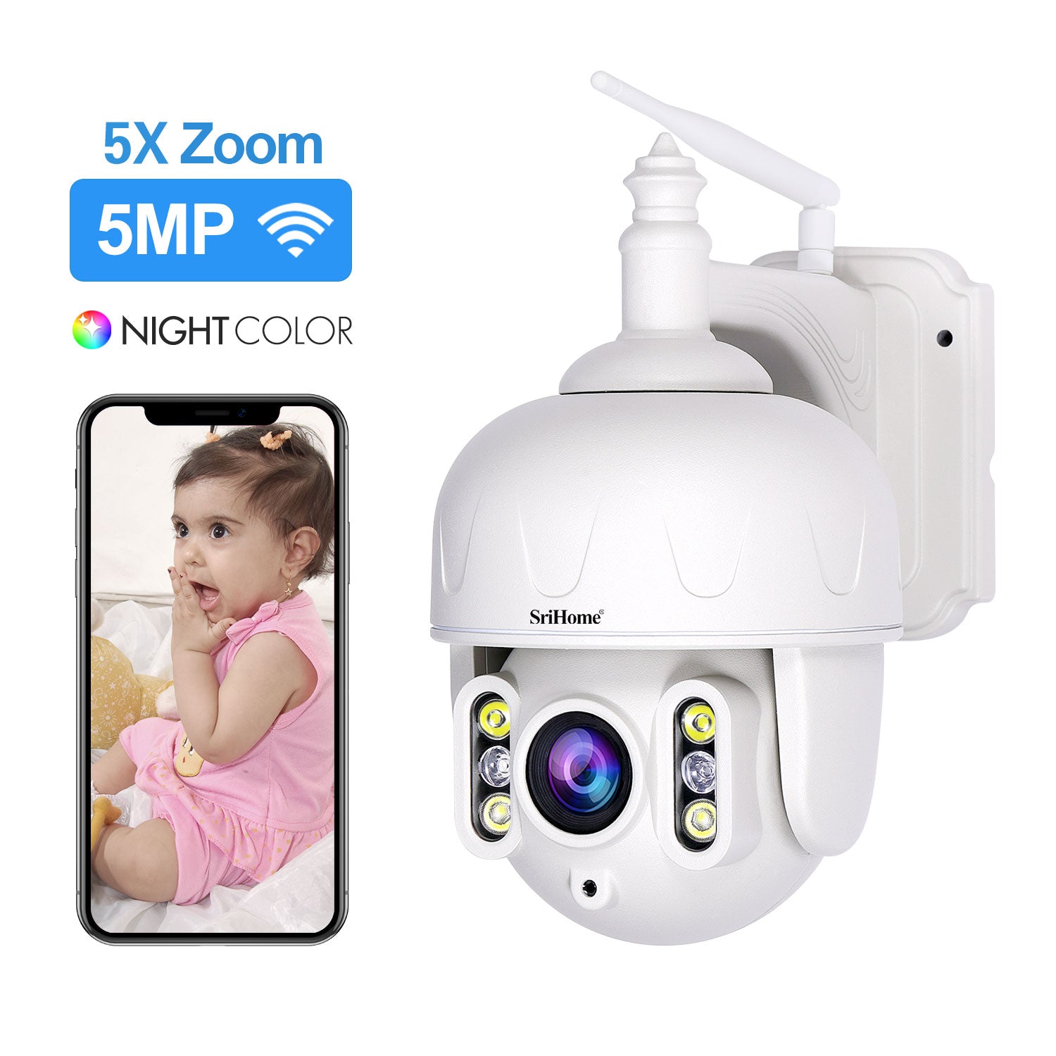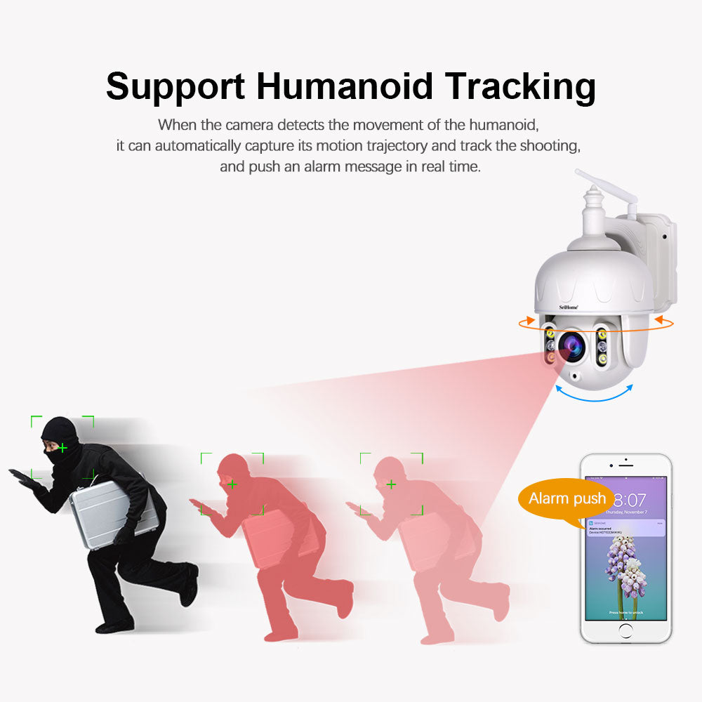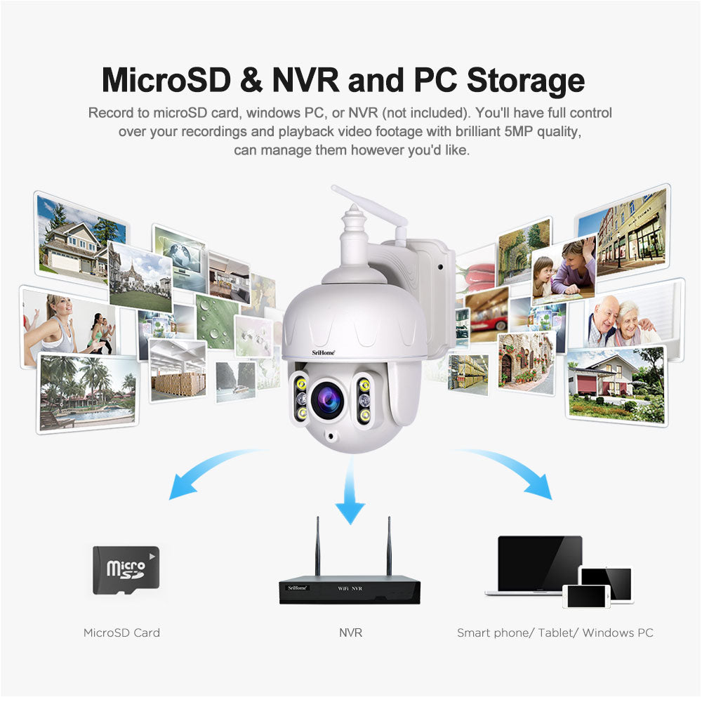 SriHome SH028: 5MP Outdoor WiFi CCTV Camera - 2K QHD PTZ, Full Metal Body, IP Security Surveillance
