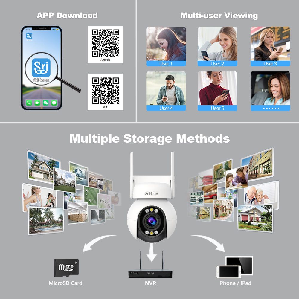 SriHome SH051: (4MP) 5X Optical Zoom CCTV Camera - 5G WiFi, 2K Video Recording, Two-Way Voice, PTZ, IR Night Vision